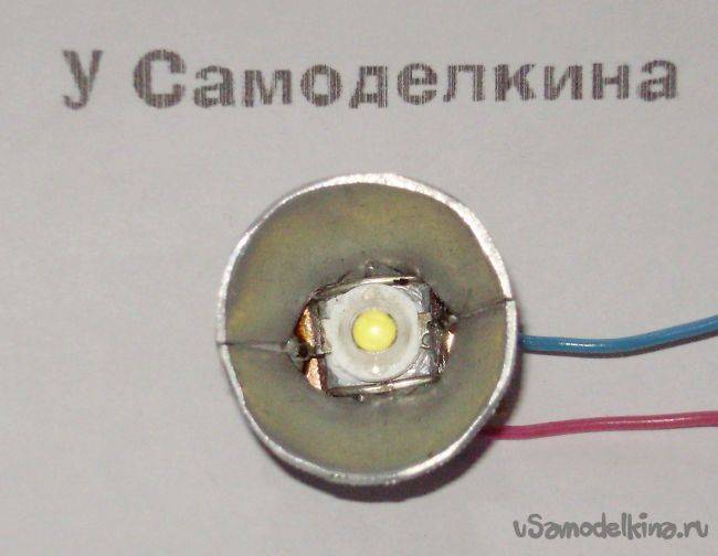 Теперь подключаем (соблюдая полярность) и наслаждаемся результатом. Сфера применения данной конструкции самая разнообразная, от настольных минисветильников и подсветок до самодельных фонариков