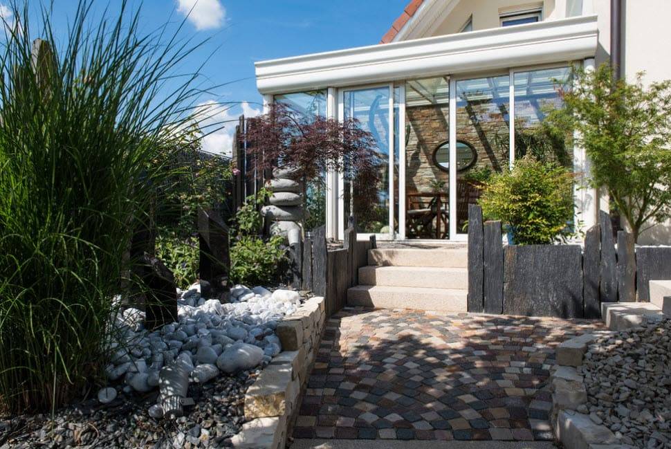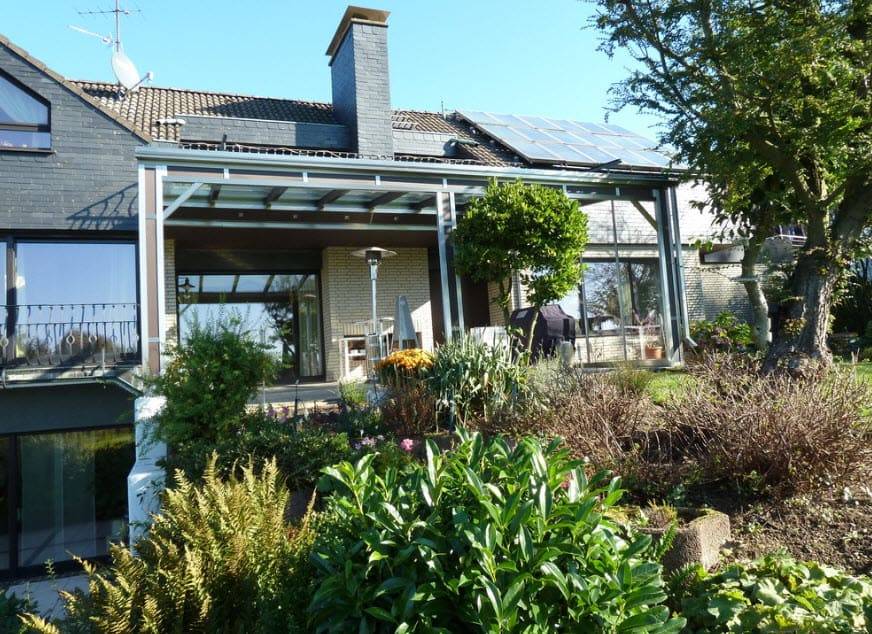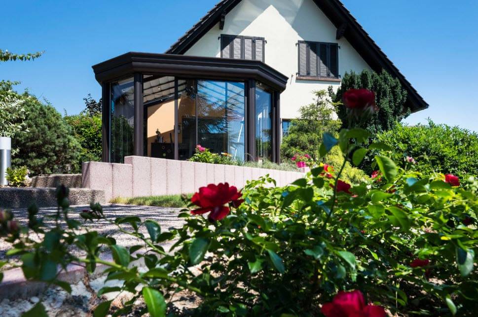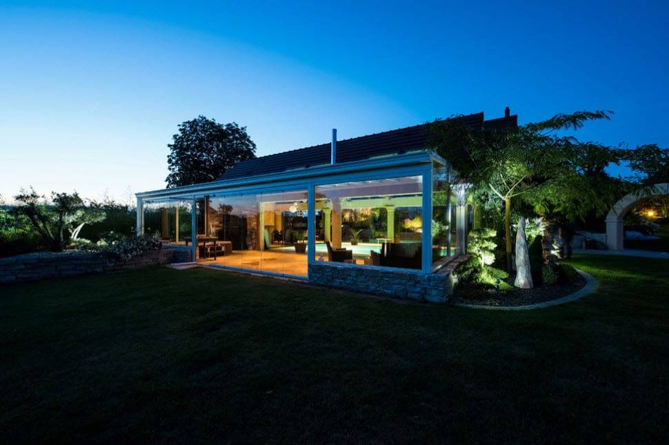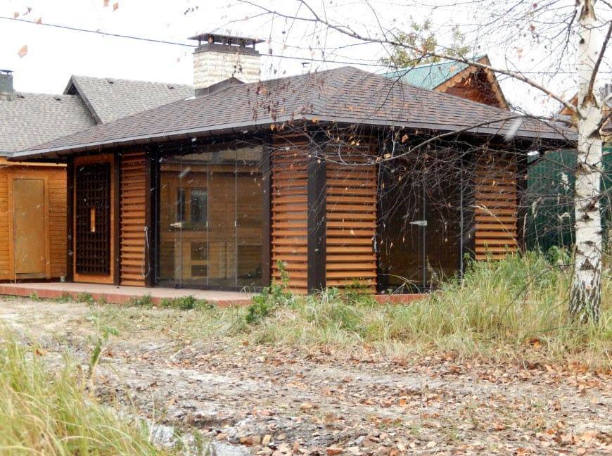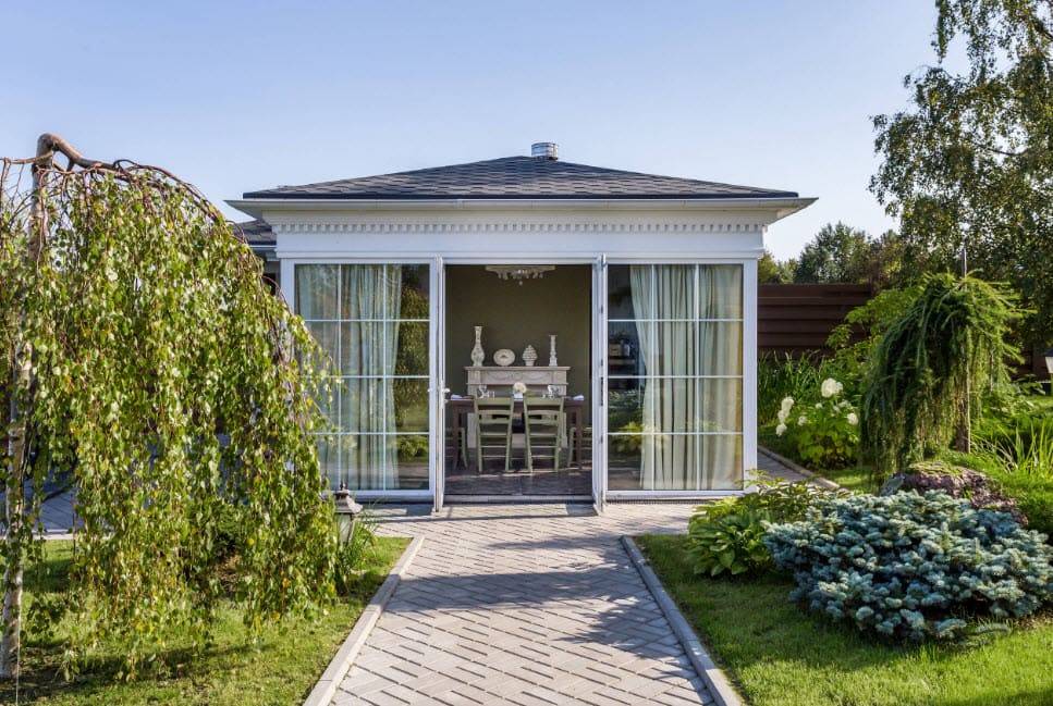 - Легкость строения. Наличие стекла создаёт эффект легкости и исключает визуальное загромождение участка.