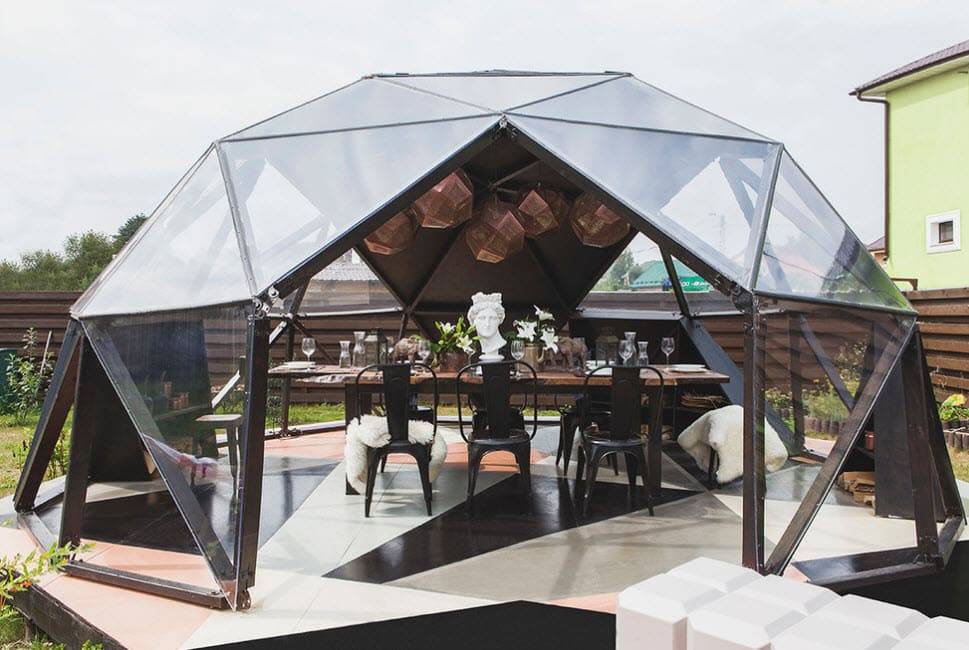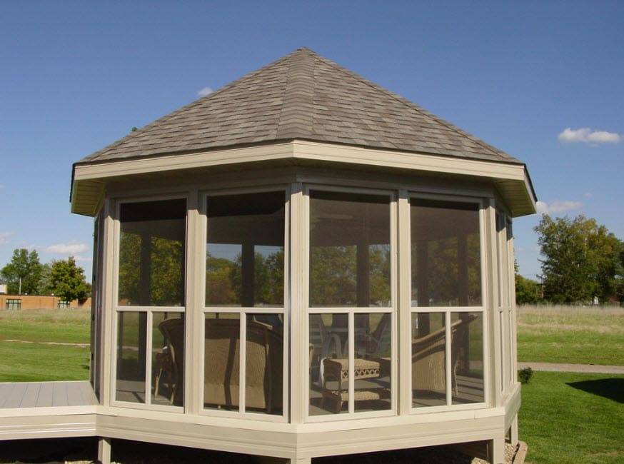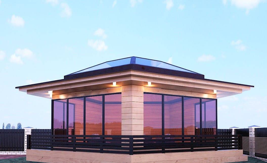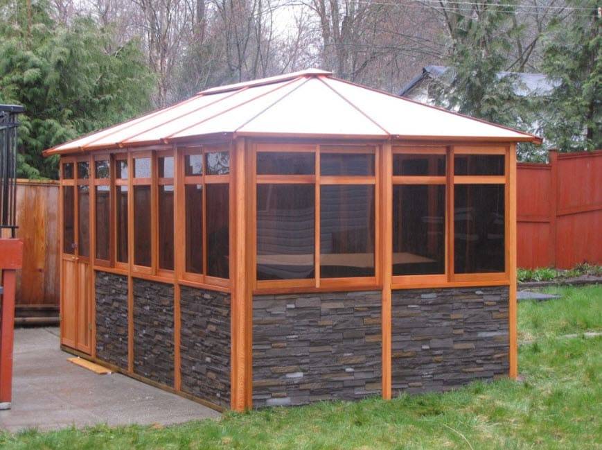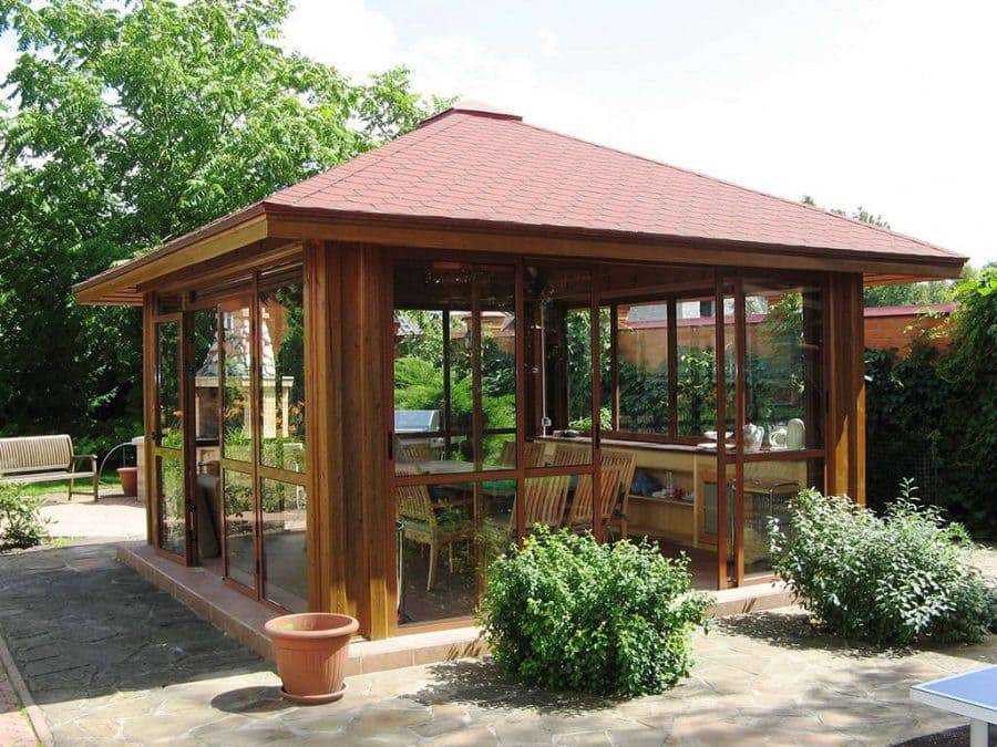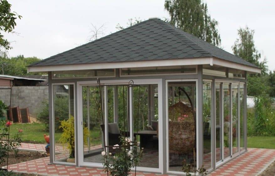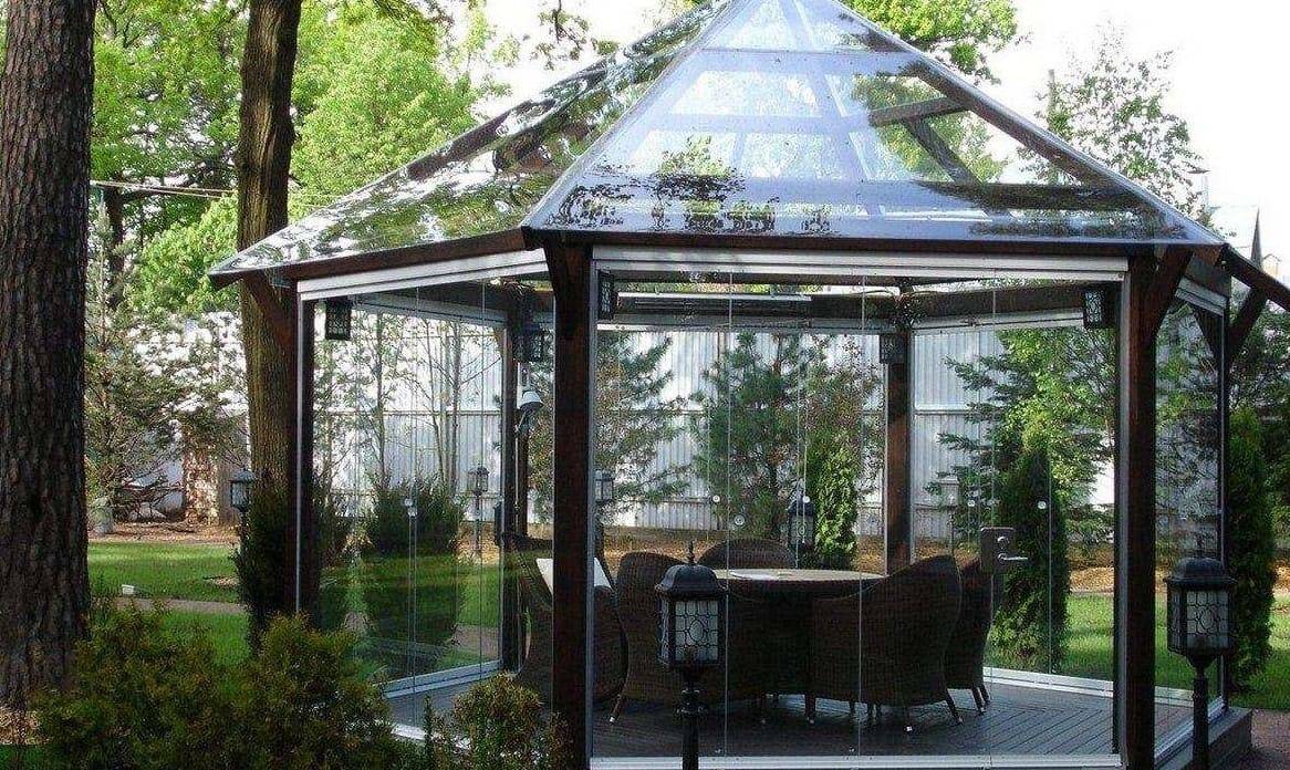 Какими бывают застекленные беседки (площадь, форма, материалы)