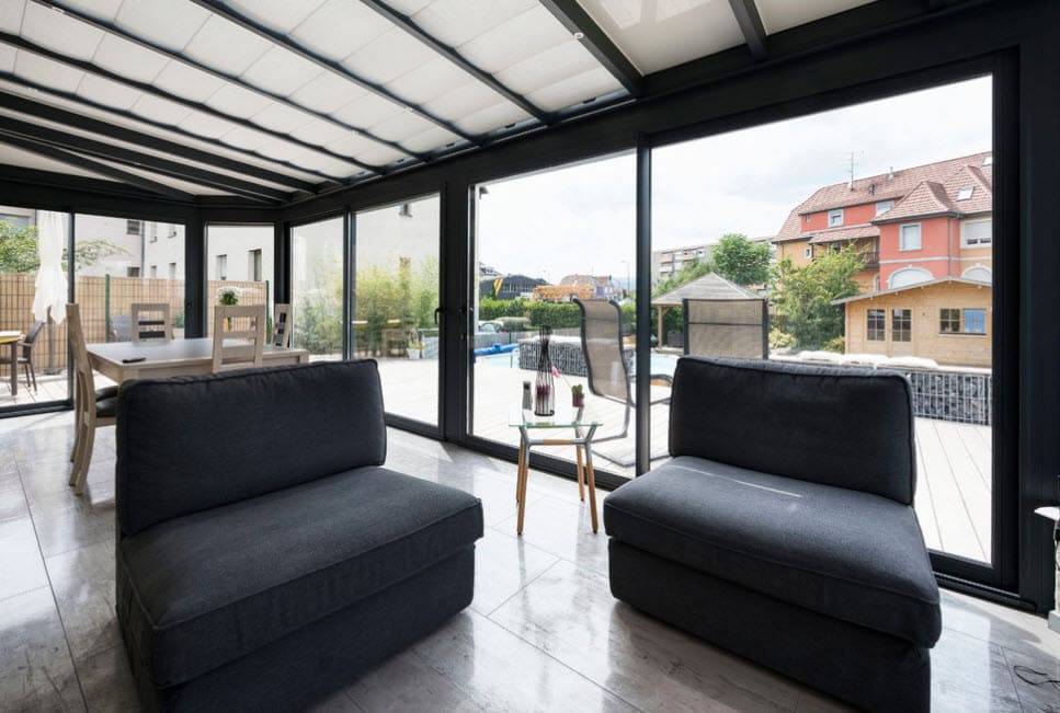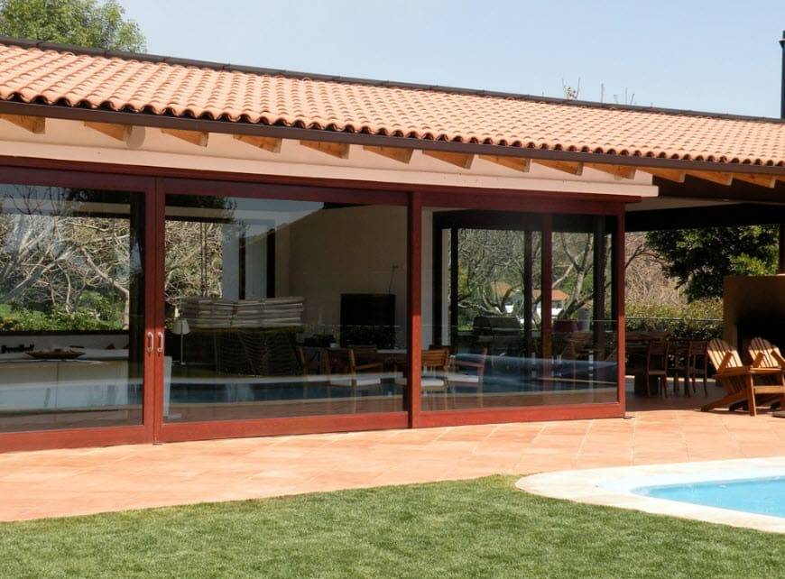 Во время выбора типа конструкции чаще всего предпочитается беседка с раздвижными стеклами, поскольку обеспечивает большую функциональность и комфорт.