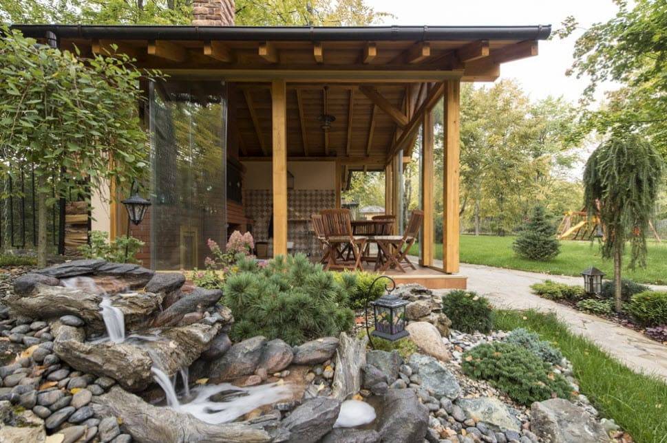 Функциональная беседка в ландшафтном дизайне предполагает практичное использование постройки. Она может совмещать в себе: