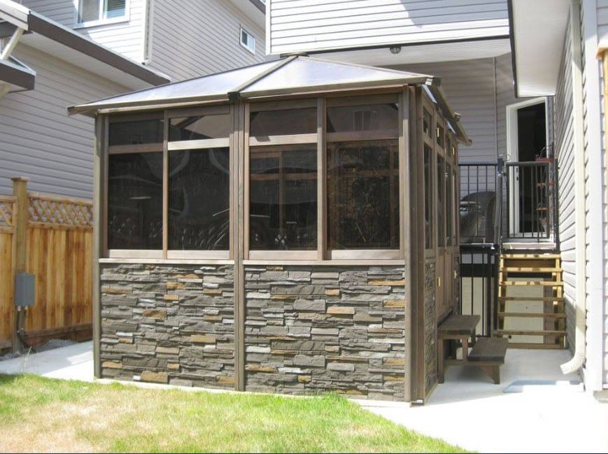 Застекленная беседка с барбекю: пластиковые зимние окна