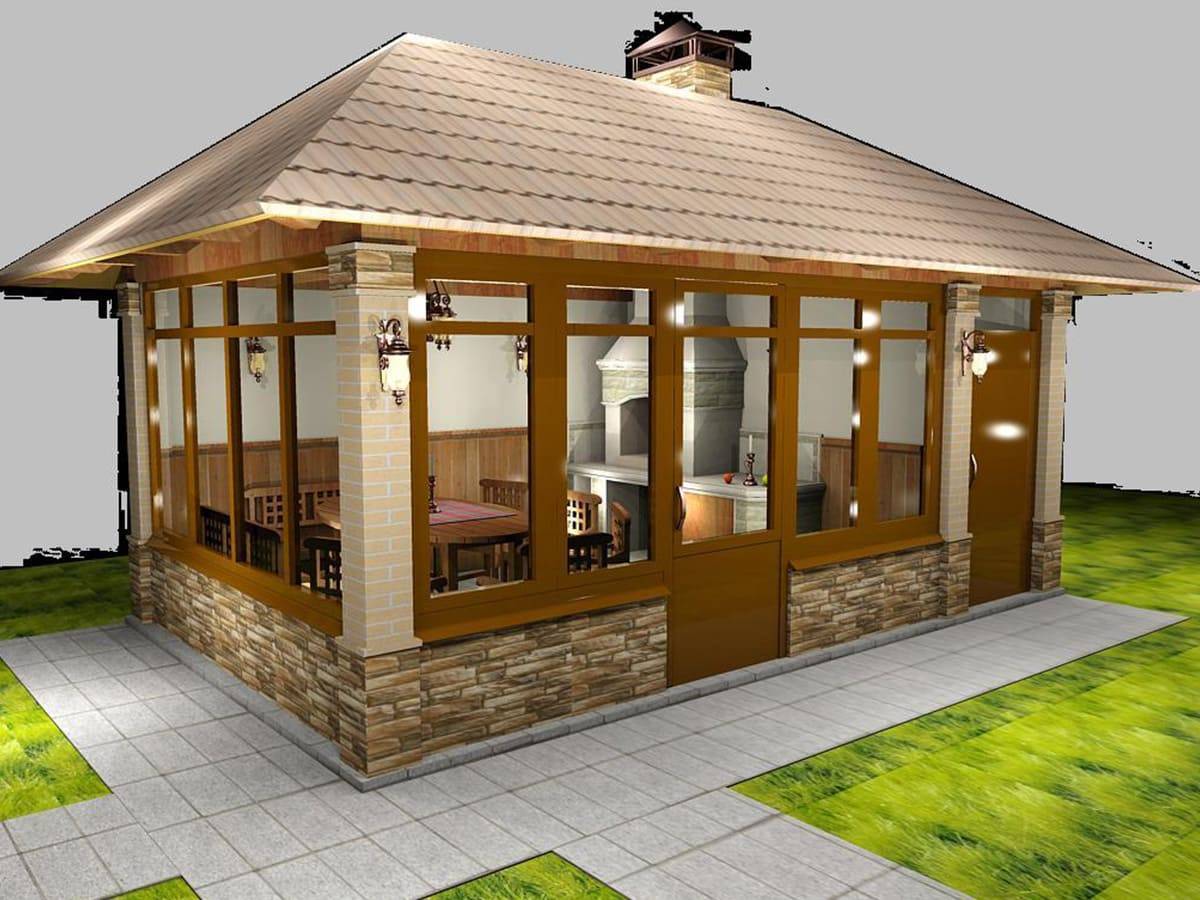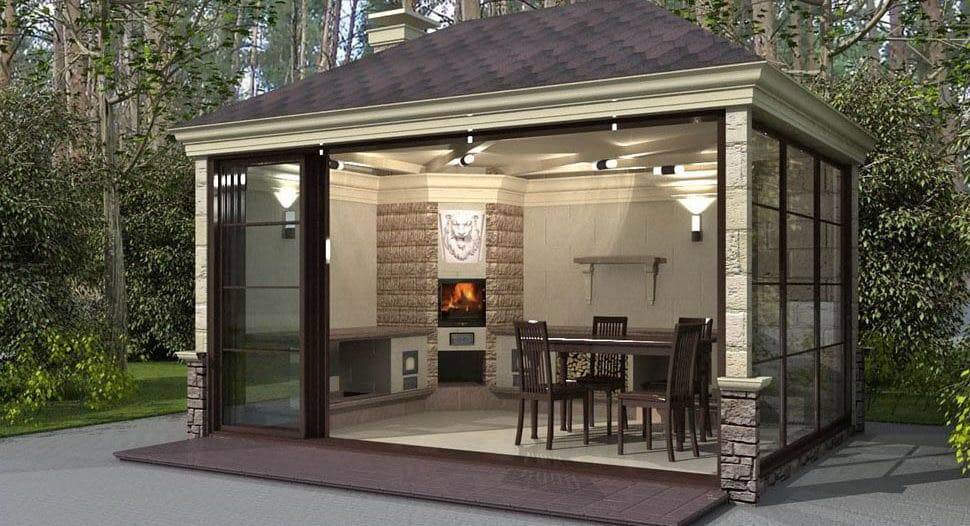 Восьмиугольная остекленная беседка с барбекю Источник evita-salon.ru