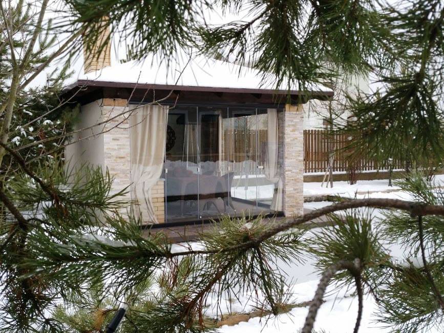 - Для любителей зимних посещений дачи сооружают беседки типа застекленного домика на время обеда шашлыками, которые жарят поблизости.