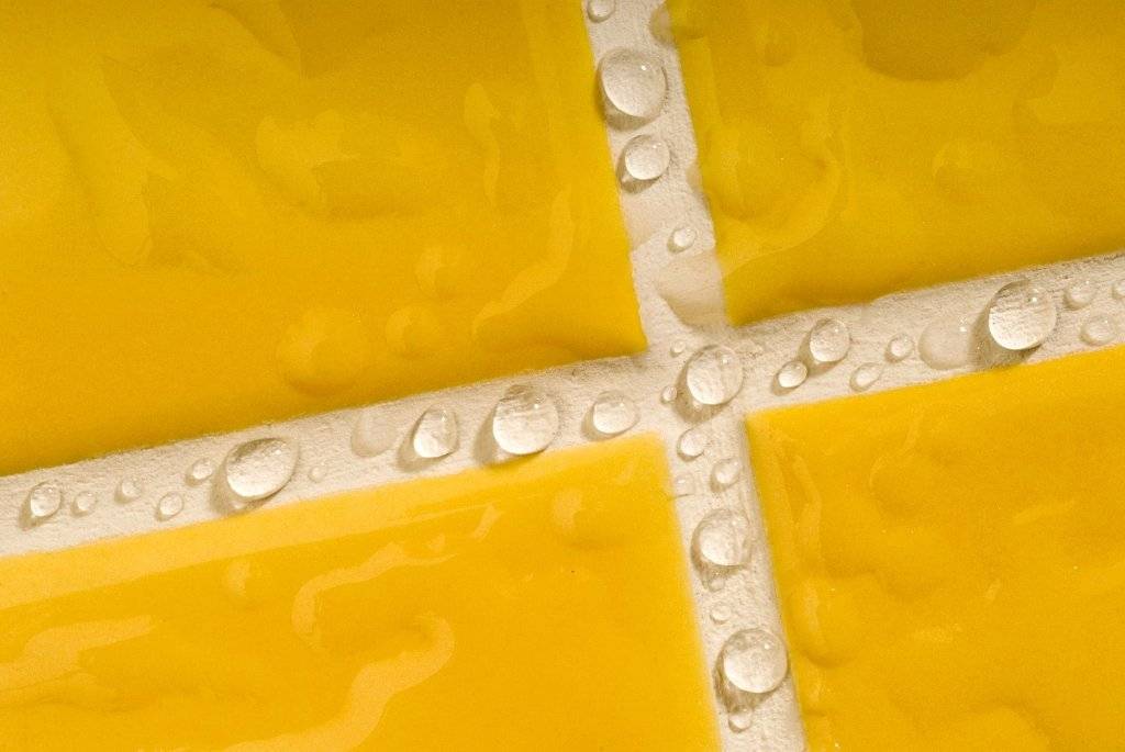 На затирке, обработанной пропиткой, образуется тонкий защитный слой, который достаточно легко разрушается и требует обновления примерно раз в полгода. Лак для швов образует более прочный слой, предохраняющий затирку от воздействия влаги, растрескивания и возникновения плесени. Вода, попадая на обработанный лаком шов, не впитывается, а стекает каплями. Глянцевый лак делает цвет фуги более насыщенным и ярким, матовый – закрепляет цвет, не изменяя его.