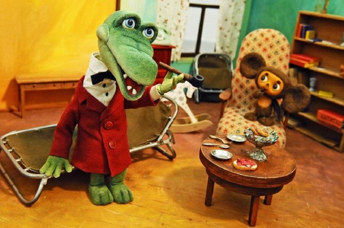 Параллельно с нарисованными мультфильмами выходили и кукольные. Здесь можно в деталях разглядеть тех самых персонажей, которых мы видели на экране. Герои мультиков «38 попугаев», «Колобок», «Варежка» и «Крокодил Гена». Чебурашка рядом с ним в кино сняться так и не успел — был запасным в одном из эпизодов.