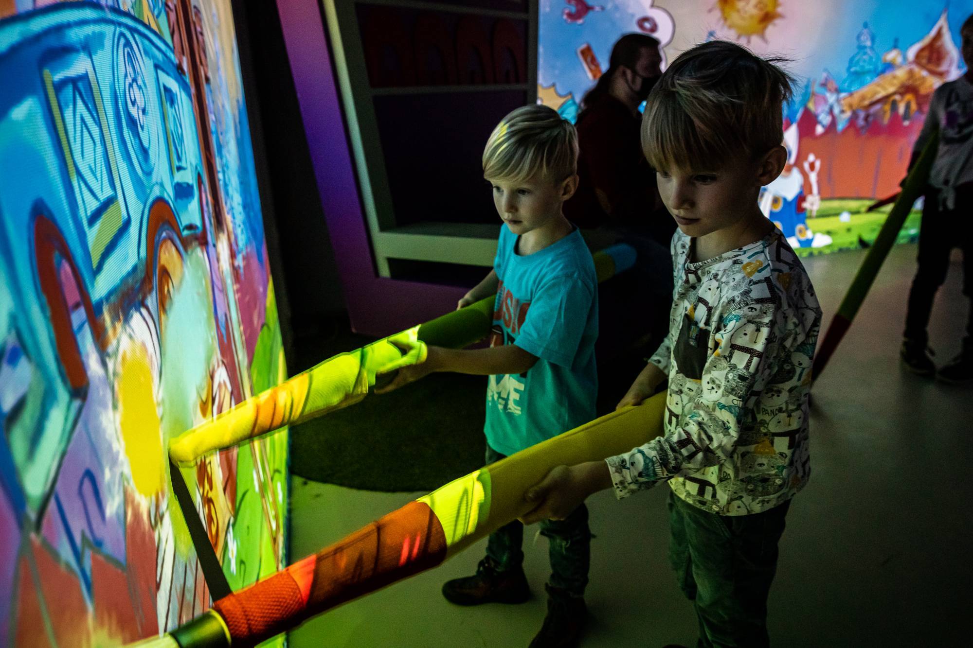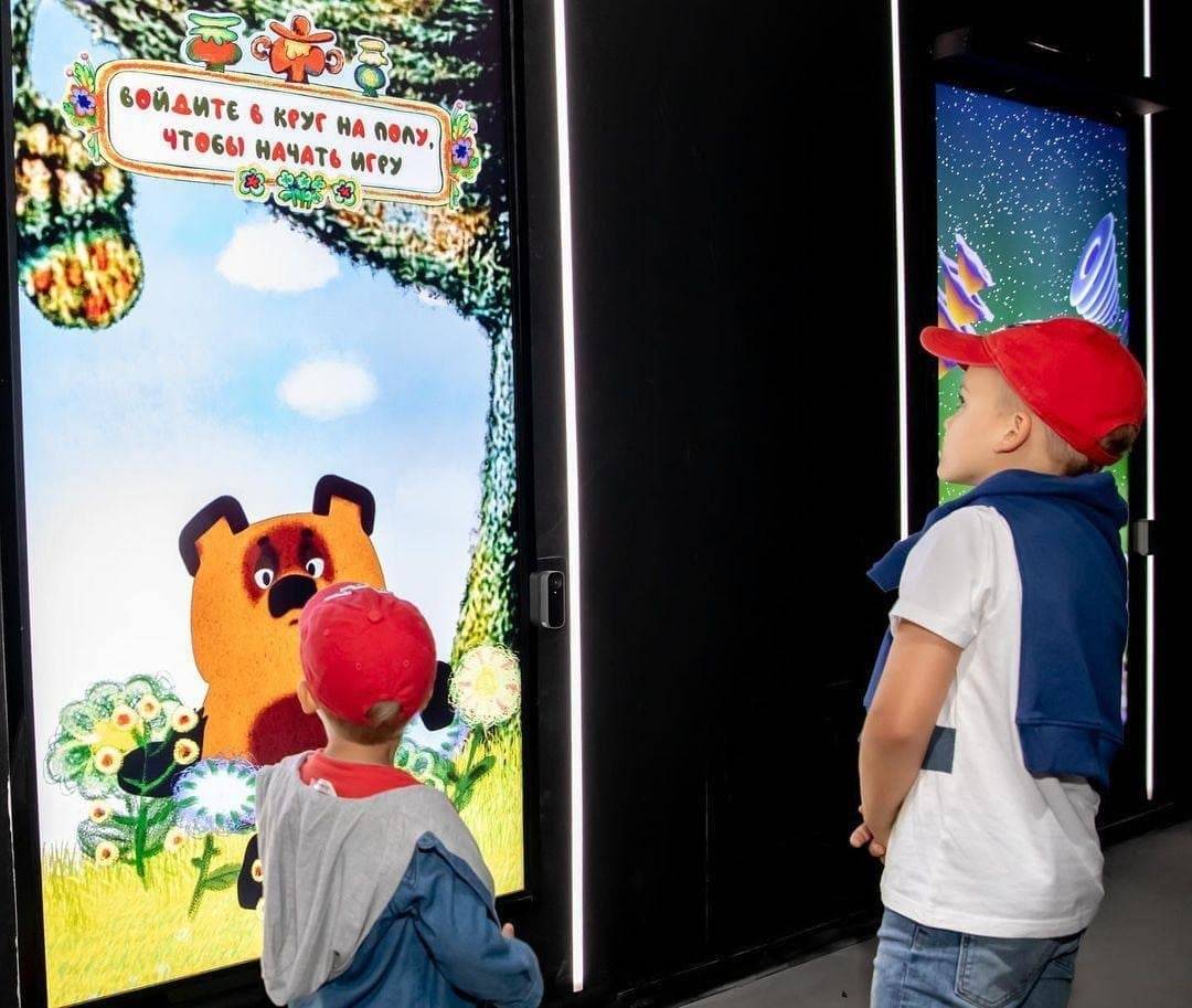 Первый этаж занимает мультстудия с мастер-классами по анимации, кинозал и игровое пространство с мульткараоке, тематическими пазлами, головоломками и конструкторами. На память об экскурсии каждый ребенок получает сертификат мультипликатора, а при входе можно сфотографироваться с фигурами старухи Шапокляк, Львенка и Черепахи, Волка и Зайца.
