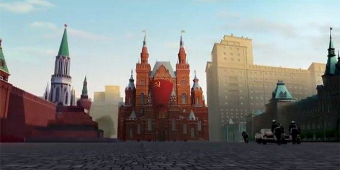 Далее маршрут пролегает через Красную площадь. Главная столичная достопримечательность запечатлена в современном мультфильме «Звездные собаки: Белка и Стрелка», который сняли в 2010 году. Действие картины разворачивается в 1960-х — тогда там развевались советские флаги, дежурил милицейский патруль, а Иверские ворота и Казанский собор еще не были восстановлены.