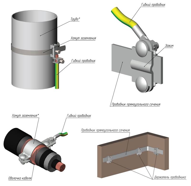 - Заземление электродвигателей и сварочных аппаратов.
