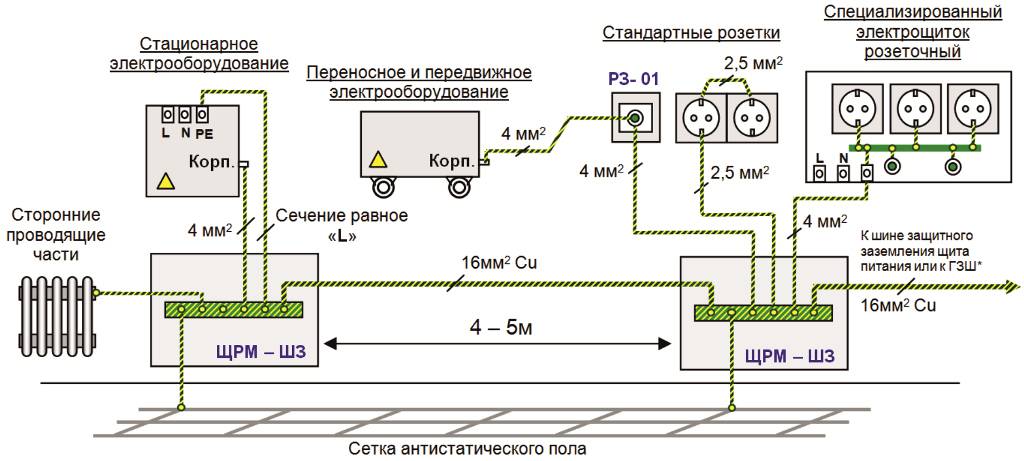 - Где проложен заземляющий контур в рабочей зоне.