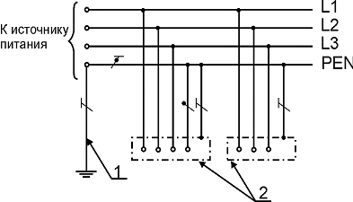- TN-C, из обозначения которой следует, что на всем протяжении трассы нулевой рабочий N и защитный PE проводники объединены в общую шину PEN (C – это «common»).