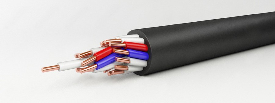 Контрольные кабели — обычно состоят из набора жил от пары до нескольких десятков. Используются для сборки цепей управления и подключения групп датчиков и исполнительных механизмов. Может быть экранирован — это поможет избежать помех и придаст дополнительную прочность изделию. Пример такого кабеля — КВВГ — медный с ПВХ-изоляцией. Вначале маркировки таких кабелей обычно стоит буква К.