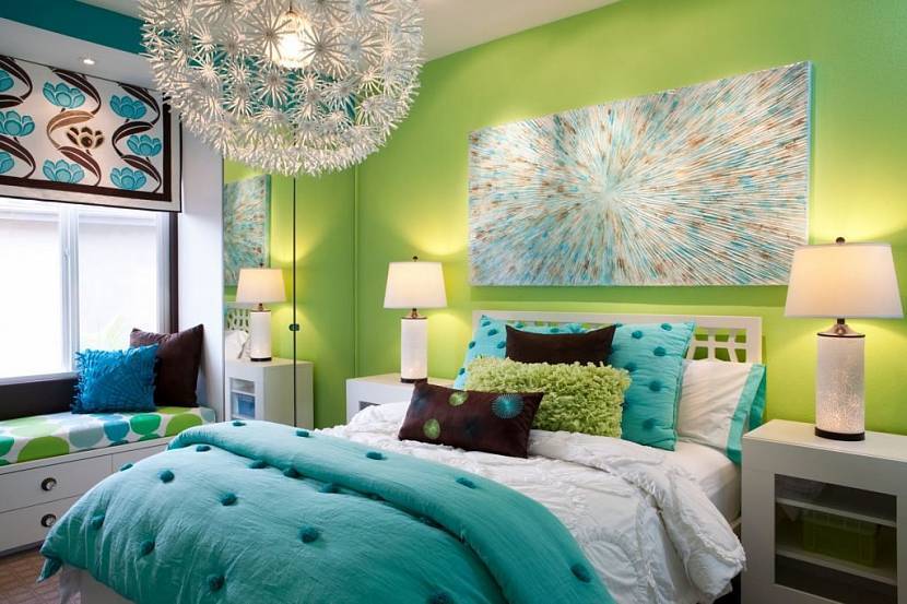 Классика, которая придает помещению очарование весенней свежести, – это сочетание белого и зеленого. Желательно добавить сюда несколько элементов насыщенных оттенков.