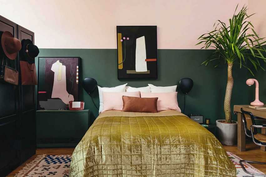 Дизайнеры рекомендуют сочетать в комнате 2-3 оттенка. Одним из них становится базовый цвет спальни. Остальные – его разбавляют или оттеняют.