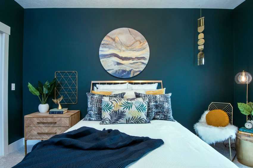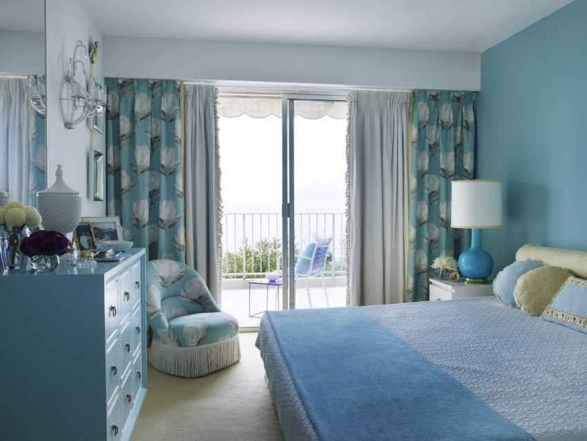 При проектировании маленькой спальни, безусловно, разумнее всего будет обратиться к ярким оттенкам, например, к голубому, который оптически расширяет интерьер. Если у спальни большая площадь, можно выбрать более темный цвет, например, темно-синий.