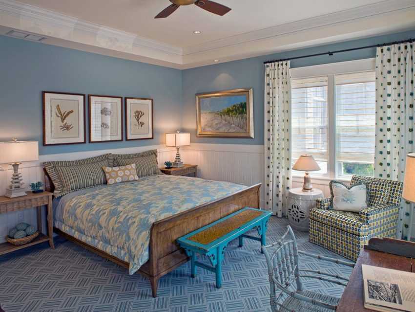 Занимаясь обустройством зоны отдыха, акцентируйте внимание на отделке стен, материалах для покрытия пола и прочих аксессуарах. Отличным вариантом здесь станет использование голубой палитры в декоре элементов интерьера спальни в синих цветах