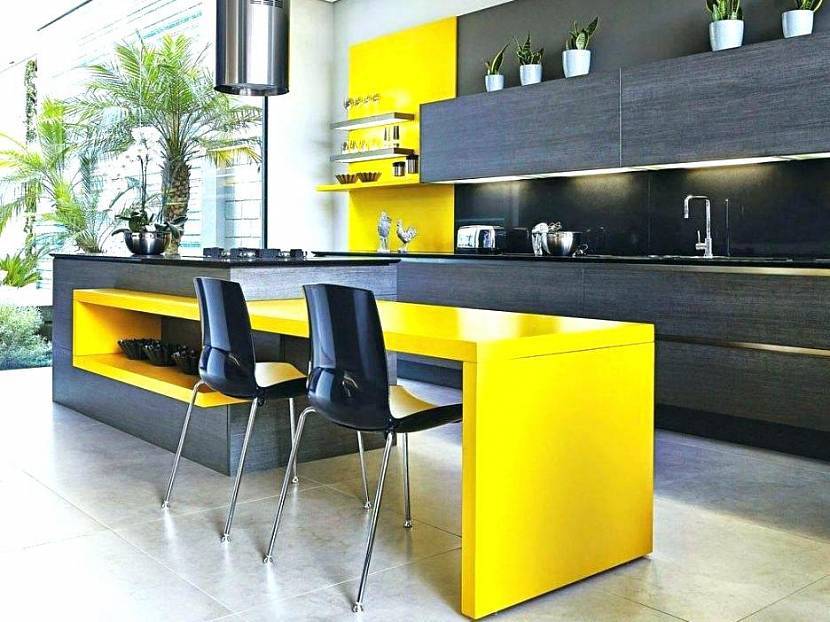 Черный цвет очень эффектно сочетается с любыми оттенками желтого, но важно не переборщить с ним. В противном случае вы рискуете получить не особо жизнерадостный интерьер