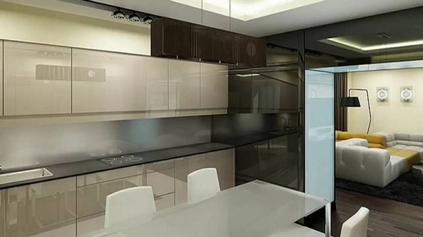 - В-четвертых, помещение становится визуально просторнее и светлее, что прекрасно подойдет для маленьких кухонь.