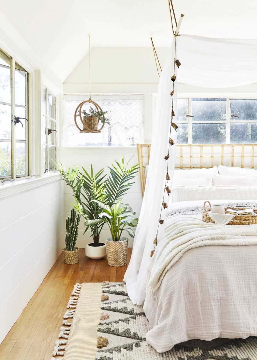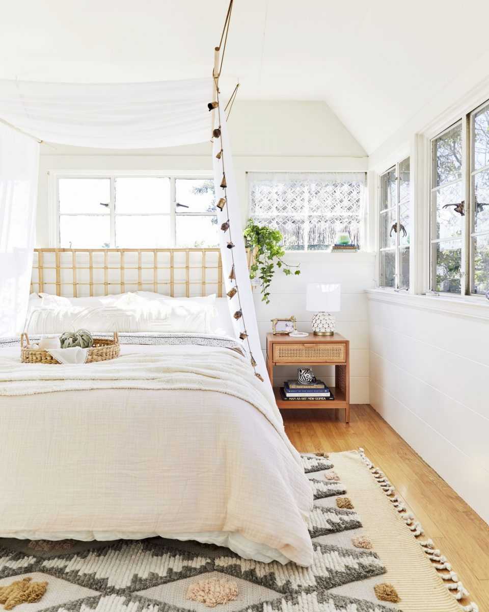 Сочетание приглушенных, ярких цветов дает ощущение безопасности и покоя в интерьере, а также создает теплое, идеальное место для отдыха. Как белый, так и его оттенки отлично подходят для стен, поэтому можно создать цветовую основу и разбавить ее дополнениями в несколько более сильных тонах. Нейтральные цвета гораздо легче сочетать с другими, что дает больше возможностей для маневра при декорировании спальни.