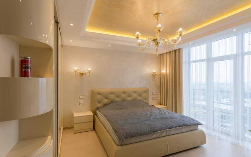 Поверхность потолка можно окрасить известковым составом с добавлением ультрамарина. Для поверхности стен прекрасным вариантом станет штукатурка или декоративные панели цвета слоновой кости. Обои на бумажной основе подходящего оттенка с профсоюзной ценой вполне могут выполнить поставленную задачу в оформлении интерьера спальни в бежевых тонах.