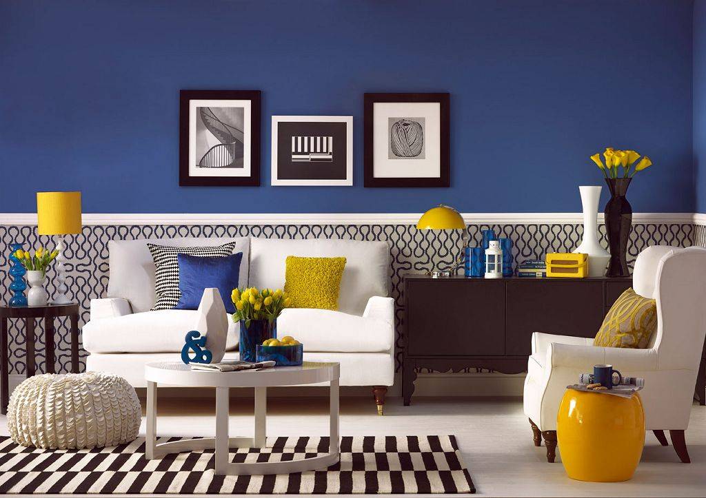 Желтый и синий или желтый и голубой – это цвета неба и солнца, поэтому в таком сочетании всегда будет радостно, как в солнечный день на улице. При этом «солнечность» интерьера не будет утомлять, так как синий цвет частично погасит огненность желтого.