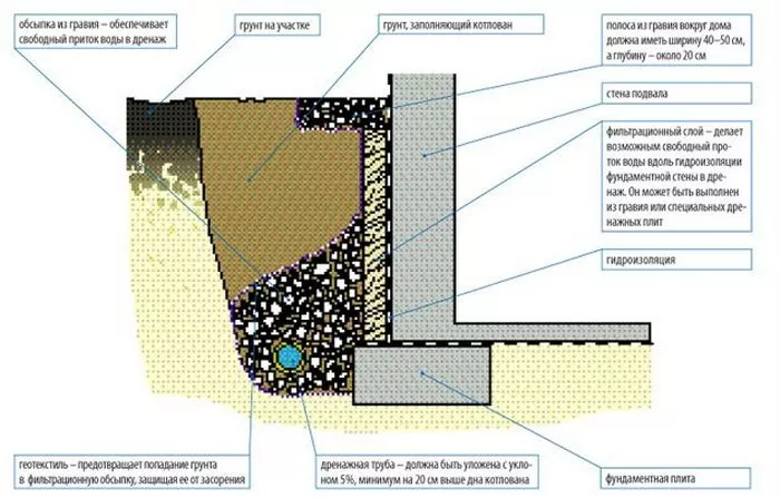 Схема устройства гидроизоляции погреба