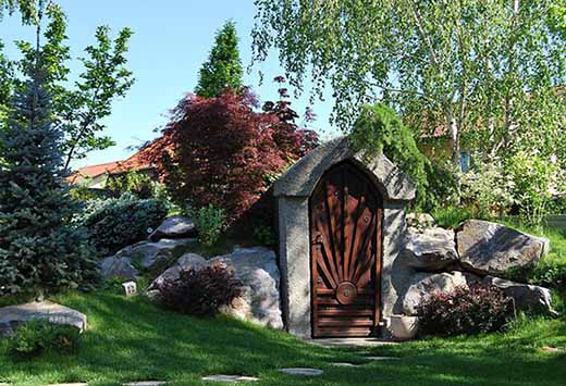 Для того, чтобы погреб лучше вписывался в общий дизайн сада, вход в погреб можно стилизовать под небольшую беседку.