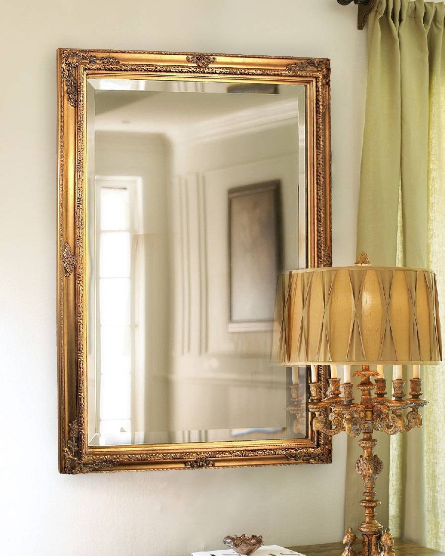 Классическое оформление большой зеркальной поверхностью, в тонкой и изящной раме