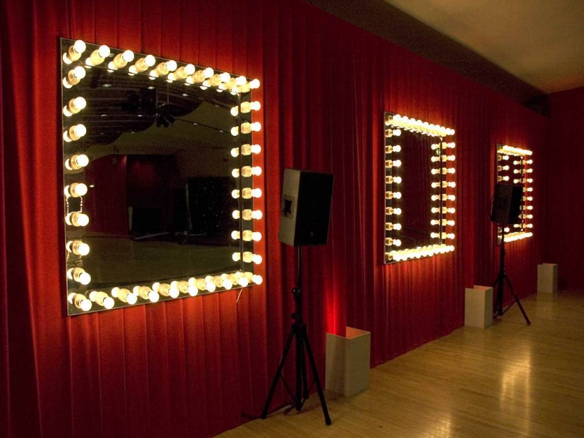 Изделия с наружной подсветкой станут оптимальным вариантом для выполнения макияжа и бритья. Наилучшим вариантом будет модель зеркала с точечными лампочками по сторонам и длинной лампой сверху посередине.