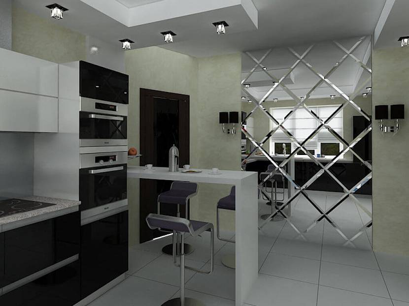 Зеркальная плитка с фацетом в интерьере кухниИсточник remontkit.ru