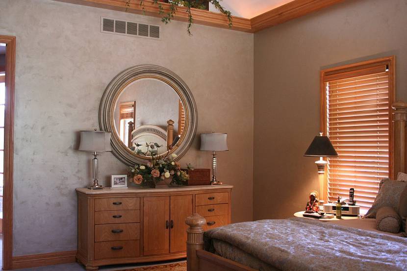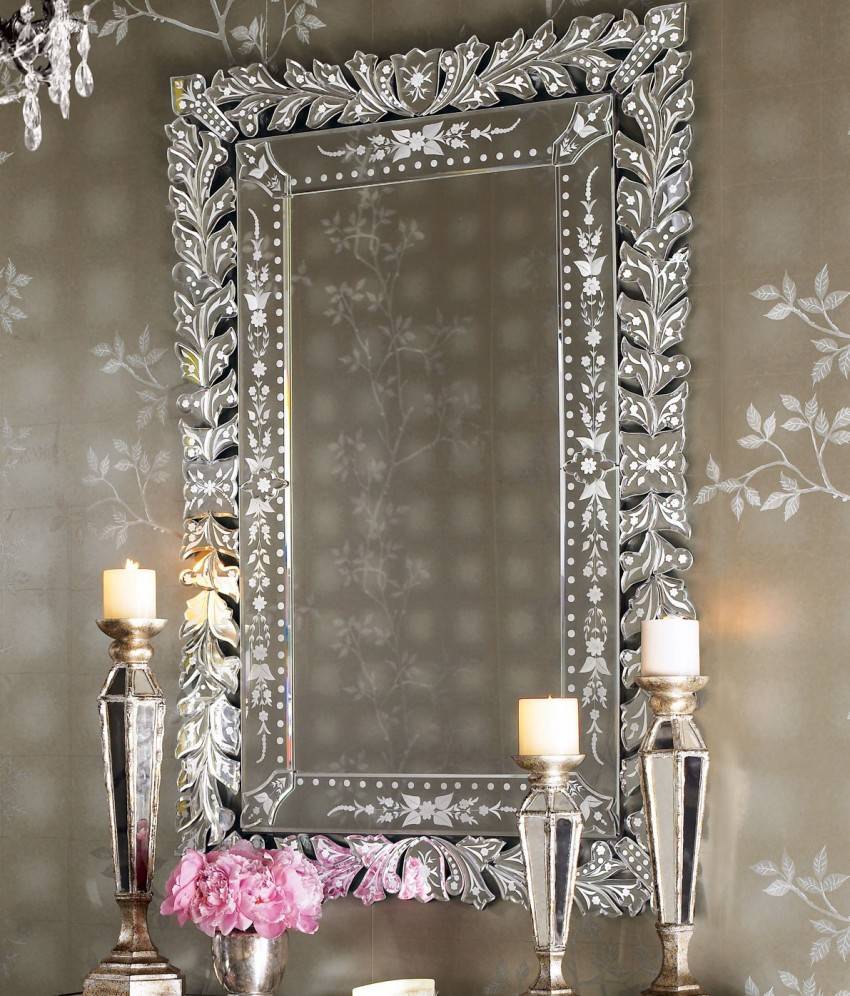 Зеркала, декорированные различными рисунками, в виде ажурных цветов, витиеватых вензелей или других орнаментов, придадут спальной комнате особой утонченности, неповторимости, стильности и отменного вкуса. Кроме того, определенные узоры могут визуально изменить геометрию и восприятие пространства.