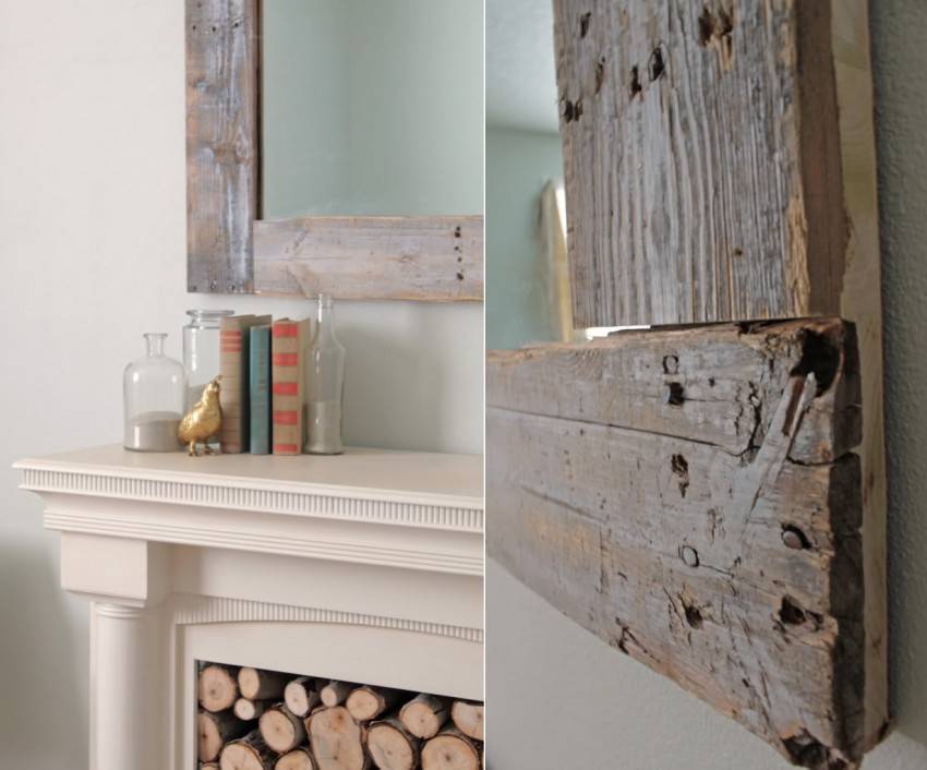 - гипсокартонные остатки, кусочки керамической плитки, деревянные щепки и прочие подручные строительные материалы, оставшиеся от ремонта, тоже могут пригодиться для оригинального обрамления зеркала.