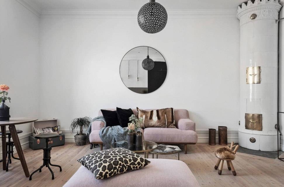 Правильное размещение расширит пространство, особенно малогабаритной гостиной. Также вам не придется загромождать комнату лишними декоративными элементами, поскольку отражение в зеркале будет наполнять пространство. От выбора формы зеркало визуально сменится восприятие пропорций комнаты, например, длинное зеркало создаст иллюзию высокого потолка, а круглое – расширит комнату.