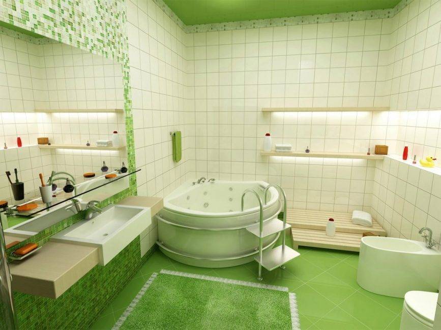 Вариант оформления большой ванной комнаты