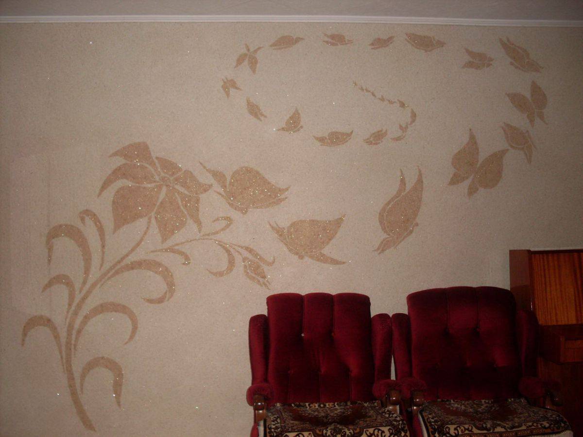 Рисунки и узоры жидкими обоями возможны в любых помещениях дома, а выполнение своими руками не только интересно и увлекательно, но и экономит немалые деньги на отделке. Причем декор в любом случае будет уникальным.