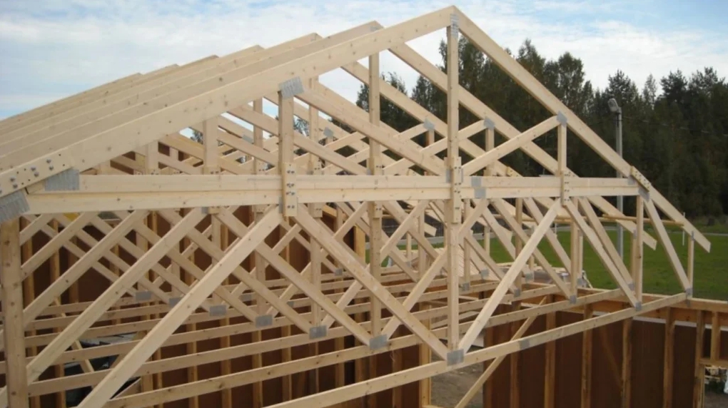 После сборки ферм и стропил, остается только набить обрешеточные брусья и можно приступать к настилки кровельного слоя.