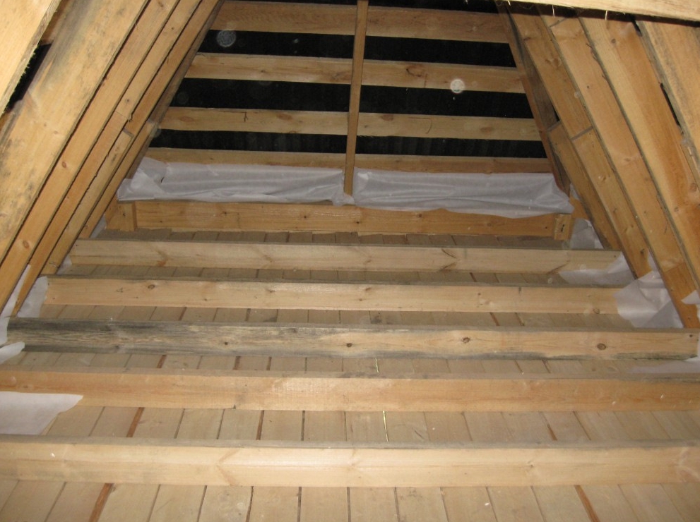 Устройство пола на чердаке досками следует проводить только в используемом пространстве