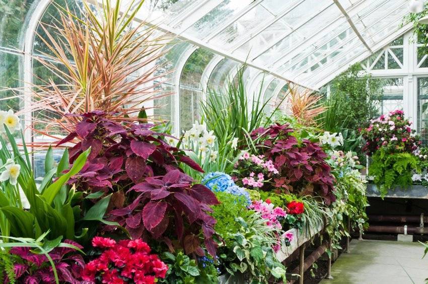- Подбор совместимых растений. Застекленный павильон плохо подходит для одновременного выращивания растений из разных климатических зон. Для успешного роста тропических, пустынных или субтропических растений нужны разные температурные режимы и влажность. Разумное комбинирование — основа красивого и здорового сада.