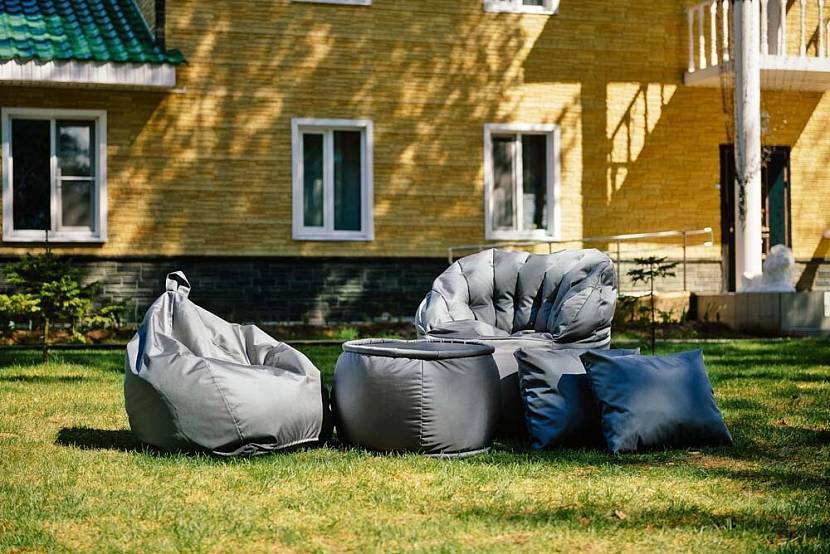 Мягкая мебель для сада – кресло-мешки, столик, подушкиИсточник partytime78.ru