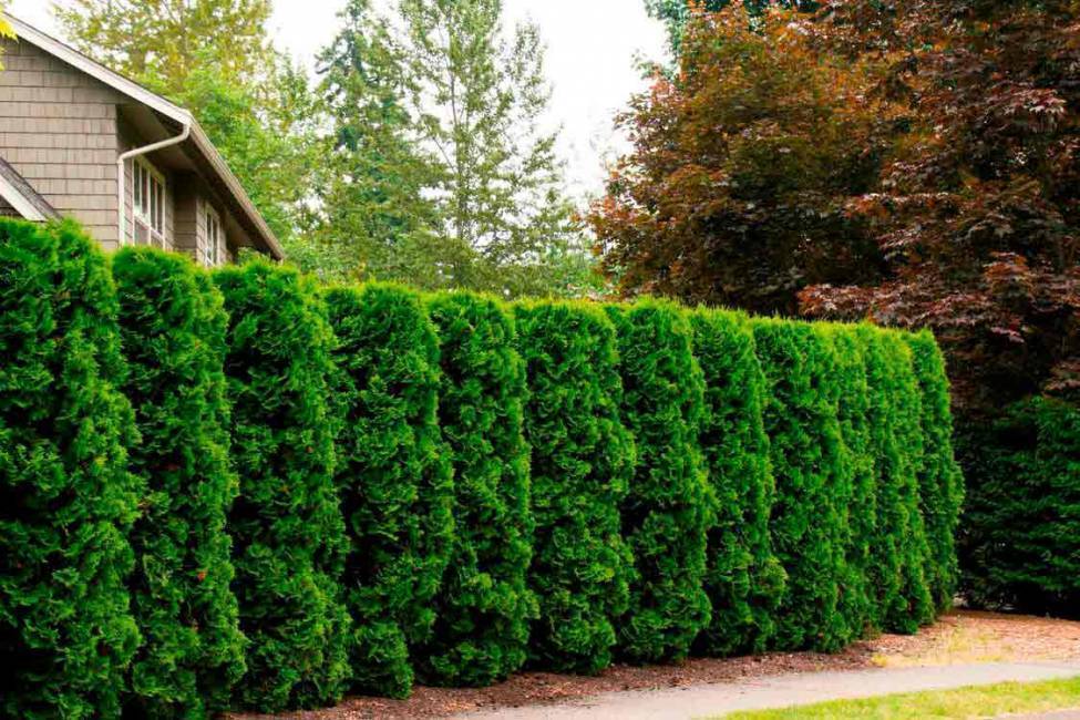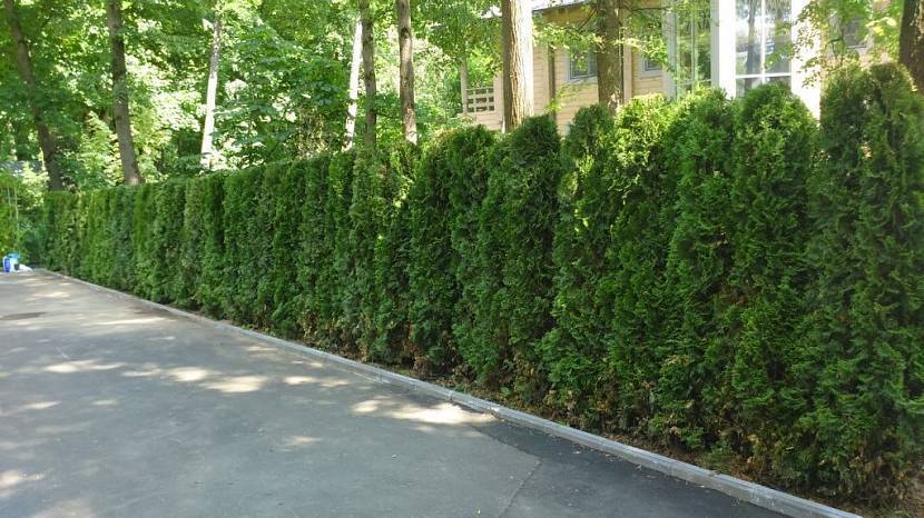 Вечнозеленая стриженая живая изгородь подходит тем, у кого есть время и финансовые возможности не только посадить, но и ухаживать за туей. Для создания плотных посадок потребуется немало экземпляров, каждый из которых продается в магазинах по достаточно высокой цене. Уход и стрижка требуют особого внимания.