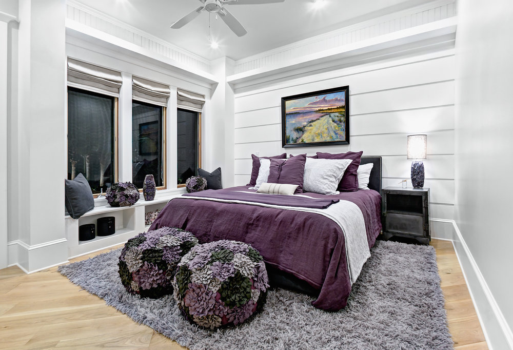 Спальня – это именно та комната, в которой можно делать почти все что угодно, так как это личное пространство хозяина, и здесь все делается по личным предпочтениям. Так, она даже может быть либо черная, либо ярко-красная! Однако стоит помнить, что спальная комната считается местом отдыха и покоя, поэтому в таком спальном интерьере тяжело будет уснуть или даже просто расслабиться. Тут чаще всего предпочтение отдается пастельным тонам. Фиолетовый, кстати, к таковым не принадлежит, но он также хорош для спальни. В этой комнате должны царить тишина и спокойствие.