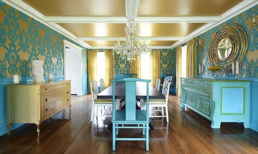 Если для оформления выбран стиль барокко, классика, ампир, то золото в интерьере просто необходимо. В современных дизайнах тоже используются золотые обои.