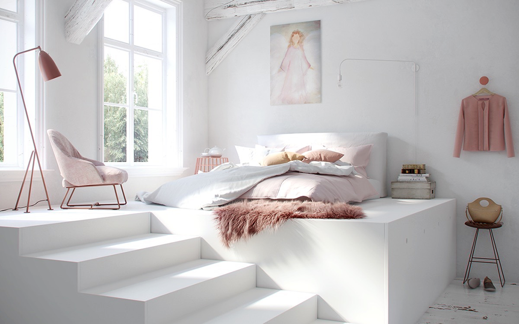 Романтический образ спальни в бело-розовых красках