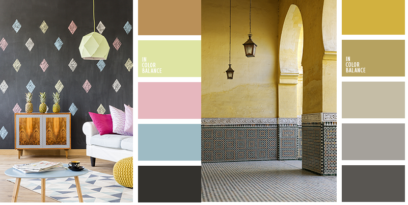 - выбирая гармоничные оттенки, помните, на разных фактурах и поверхностях они могут смотреться по-другому;