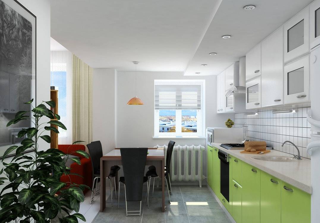 В таком случает дизайнеры советуют использовать неяркие однотонные элементы одной цветовой гаммы. Единый оттенок или дизайн поможет сохранить единство пространства. Разнообразить кухню поможет цветной гарнитур и яркие элементы декора.