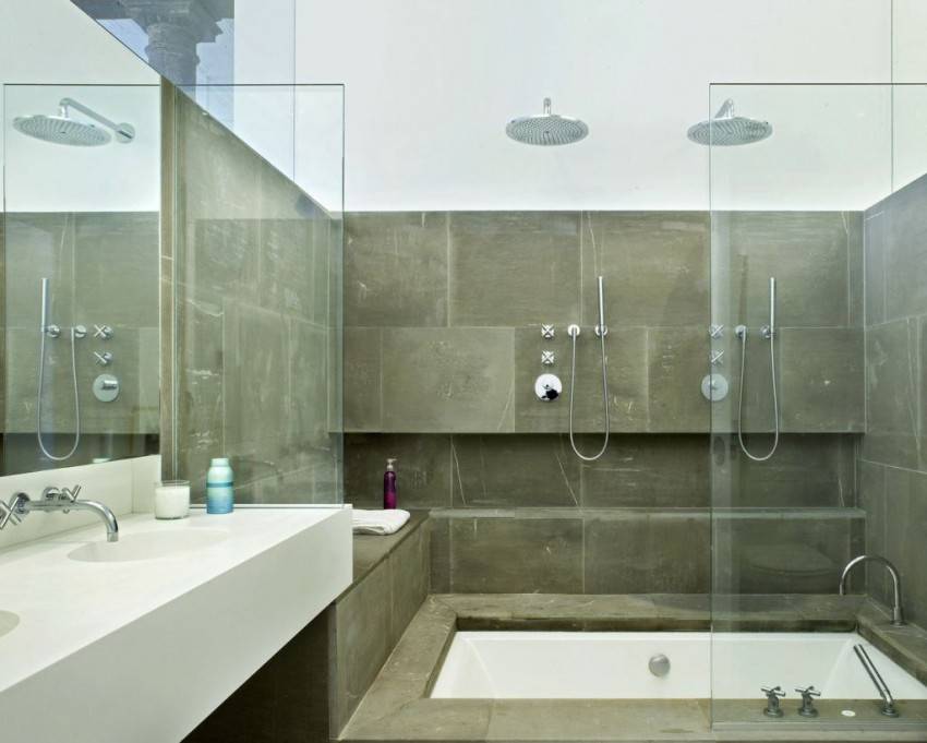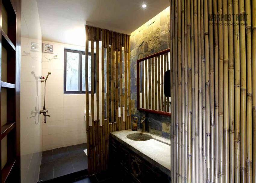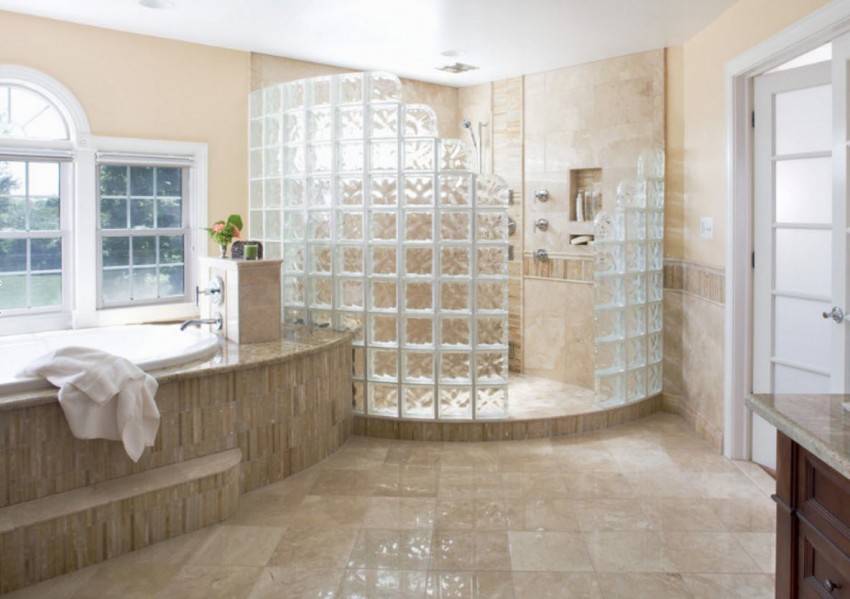 Чтобы брызги воды не проникали в спальню, используют стены и перегородки.