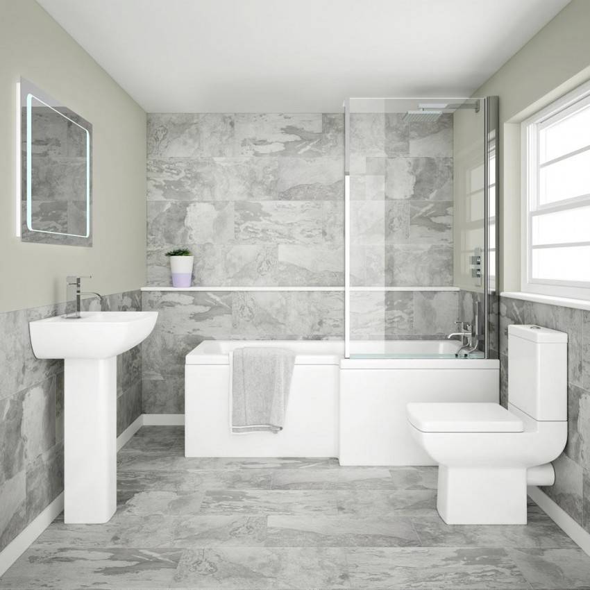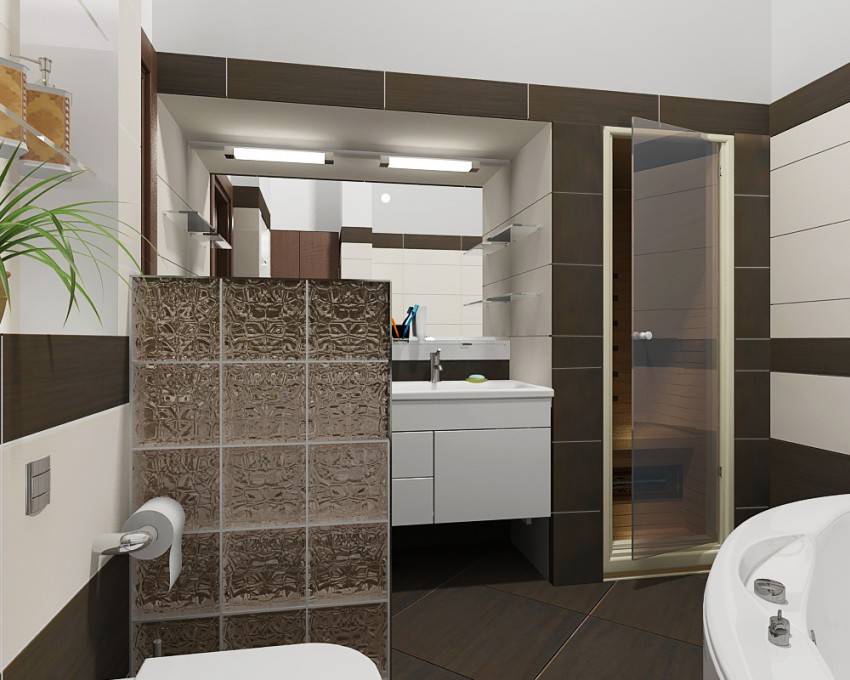 Отдельно стоит поработать над зонированием площади, что позволит визуально разъединить пространство ванны от туалета, а также сделает дизайн более лаконичным и интересным для восприятия.