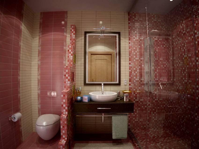 Мозаика в отделке, а также вертикальные полосы плитки способны увеличить помещение визуально, горизонтальные – наоборот.